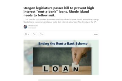 Oregon legislature passes bill to prevent high interest "rent-a-bank" loans. Rhode Island needs to follow suit.
