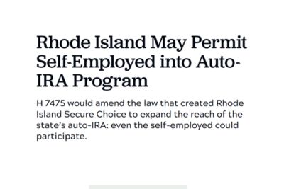 Rhode Island May Permit Self-Employed into Auto-IRA Program
